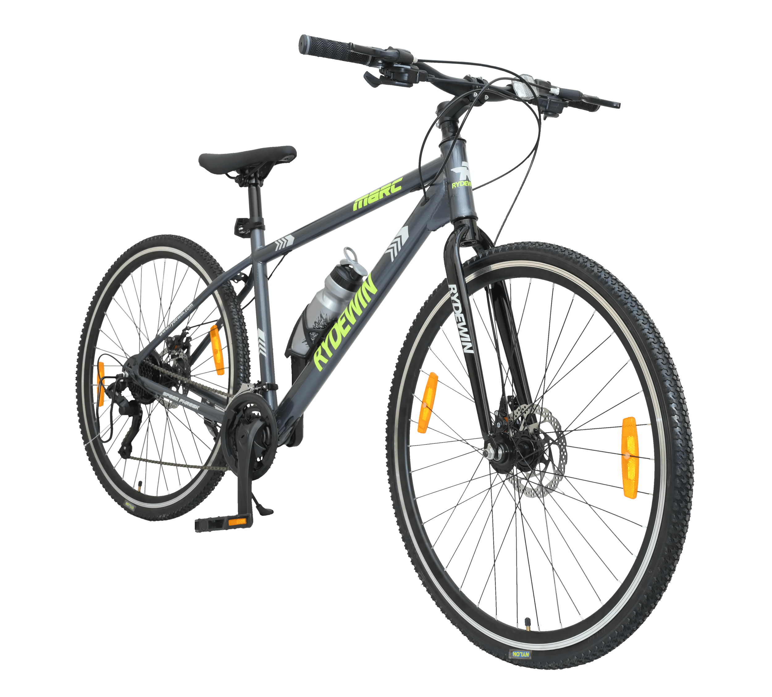 The Marc 700c Hybrid bike is designed for versatility and durability. It boasts double wall alloy rims for enhanced strength and puncture resistance, disc brakes for dependable stopping power in all weather conditions, and a sturdy hi-tensile steel frame for added resilience. Ideal for both urban commuting and recreational rides, this hybrid bike balances performance with durability.